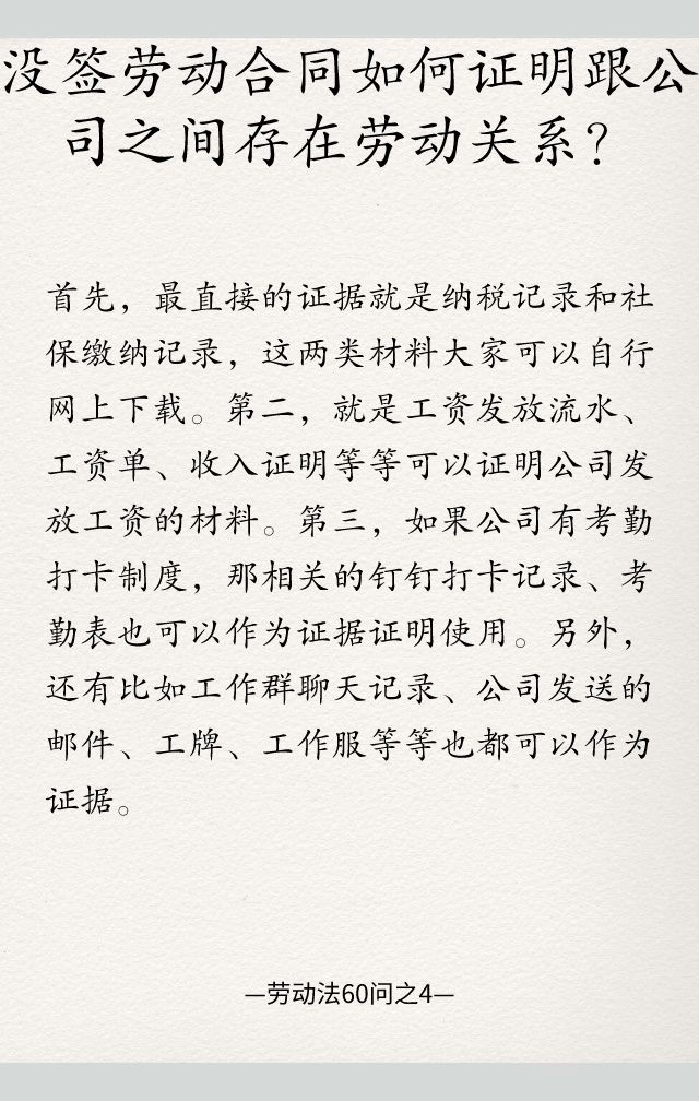 劳动法60问之4|没签书面劳动合同如何证明跟公司之间存在劳动