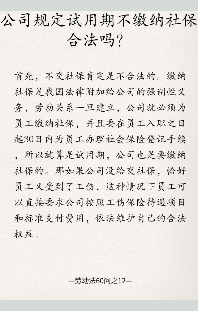 劳动法60问之12|公司规定试用期不缴纳社保合法吗?