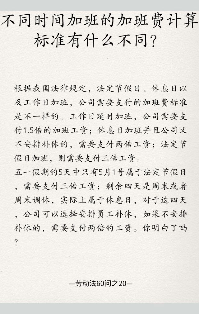 劳动法60问之20|不同时间加班的加班费计算标准有什么不同?