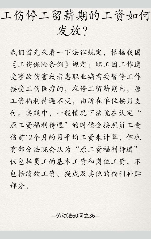 劳动法60问之36|工伤停工留薪期的工资如何发放?