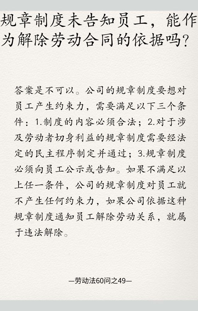劳动法60问之49|规章制度未告知员工,能作为解除劳动合同的