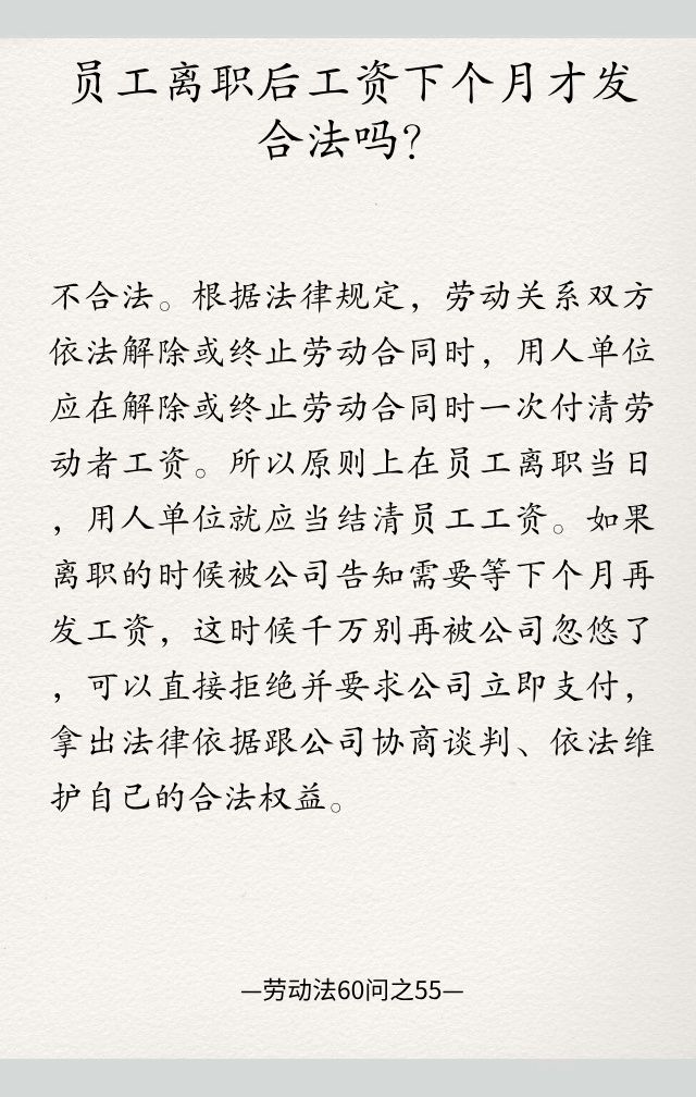 劳动法60问之55|员工离职后工资下个月才发合法吗?