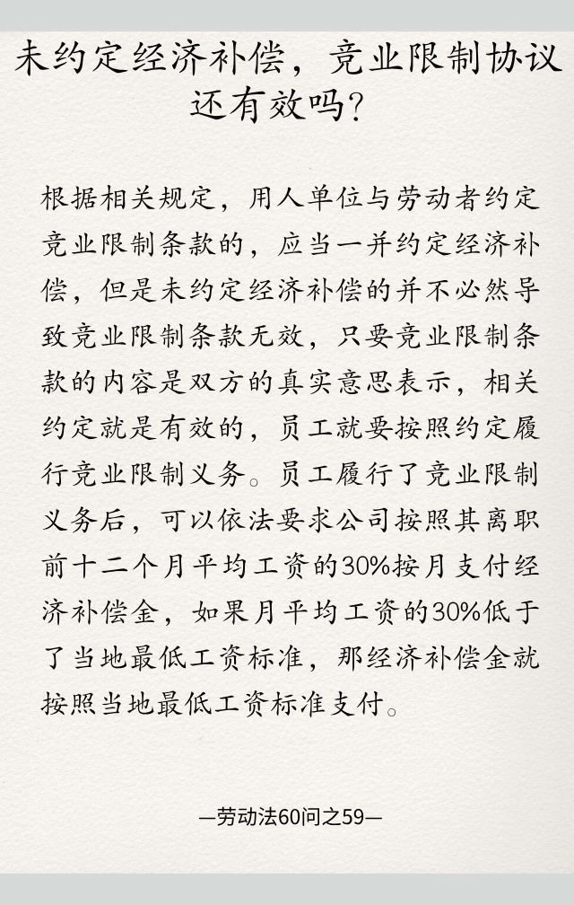 劳动法60问之59|未约定经济补偿,竞业限制协议还有效吗?