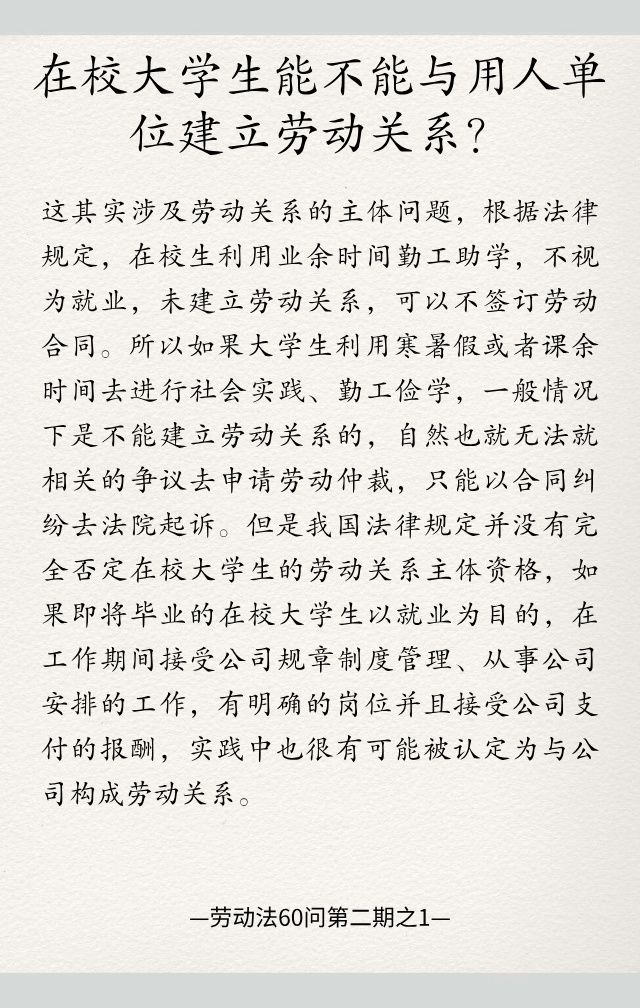 劳动法60问第二期之1|在校大学生能不能与用人单位建立劳动关