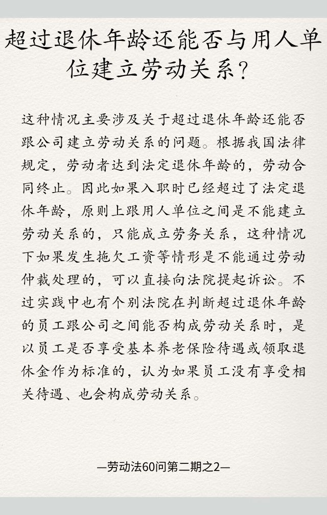 劳动法60问第二期之2|超过退休年龄还能否与用人单位建立劳动