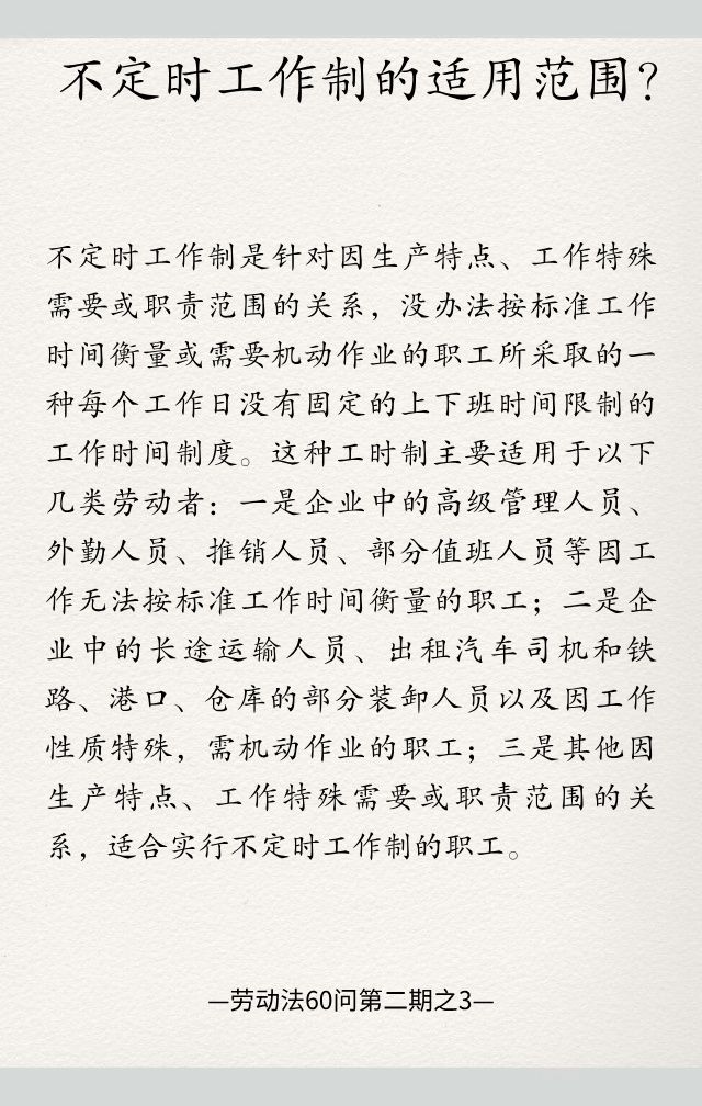劳动法60问第二期之3|不定时工作制的适用范围?