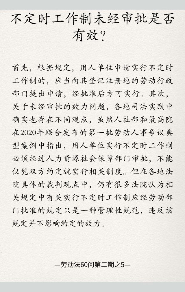 劳动法60问第二期之5|不定时工作制未经审批是否有效?