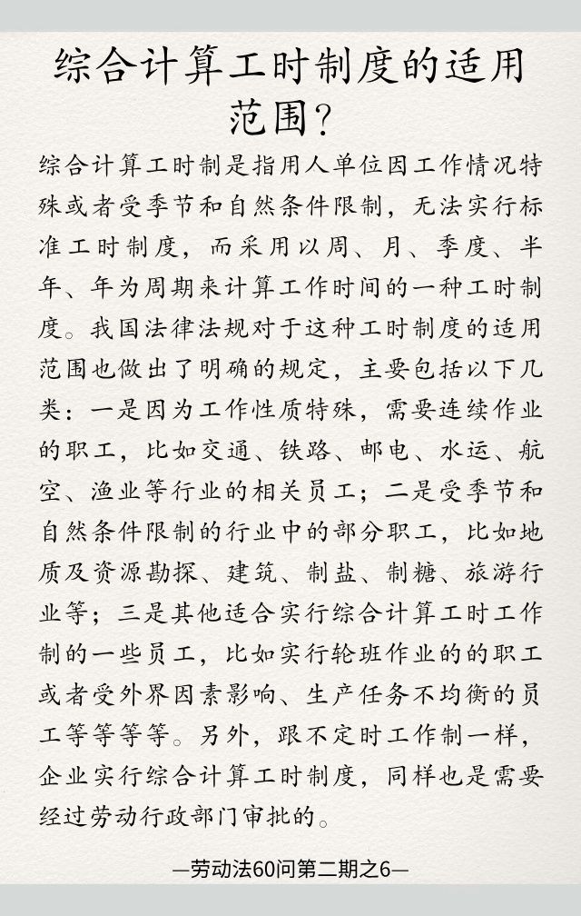 劳动法60问第二期之6|综合计算工时制度的适用范围?