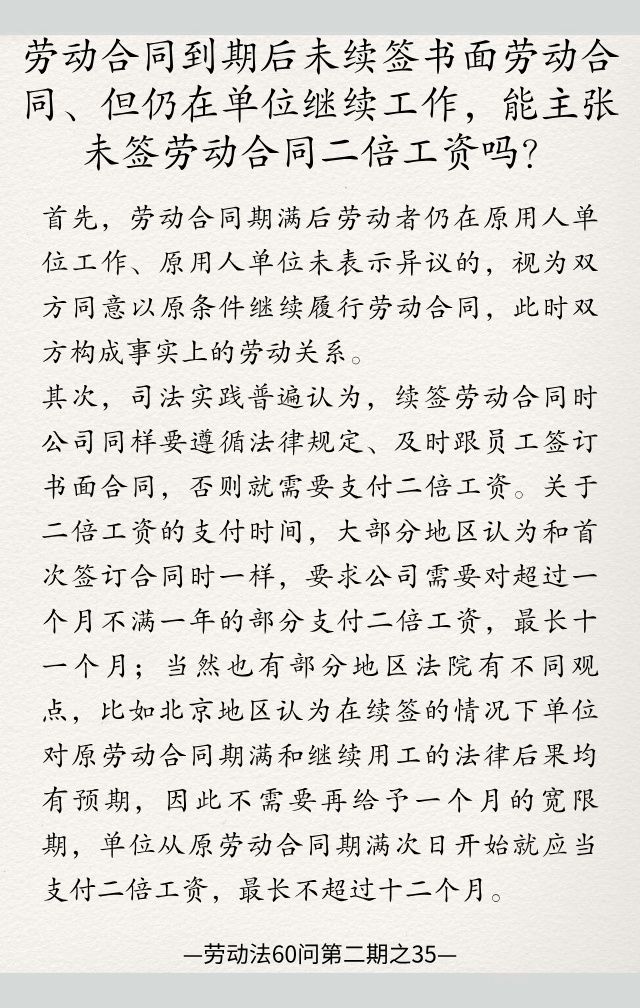劳动法60问第二期之35|劳动合同到期后未续签书面劳动合同、