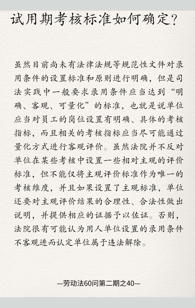 劳动法60问第二期之40|试用期考核标准如何确定?