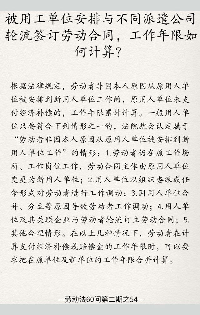 劳动法60问第二期之54|被用工单位安排与不同派遣公司轮流签