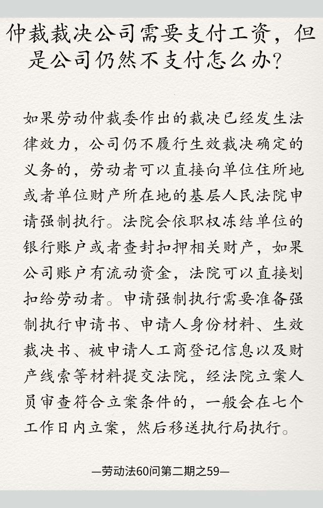 劳动合同法60问第二期之59|仲裁裁决公司需要支付工资,但是