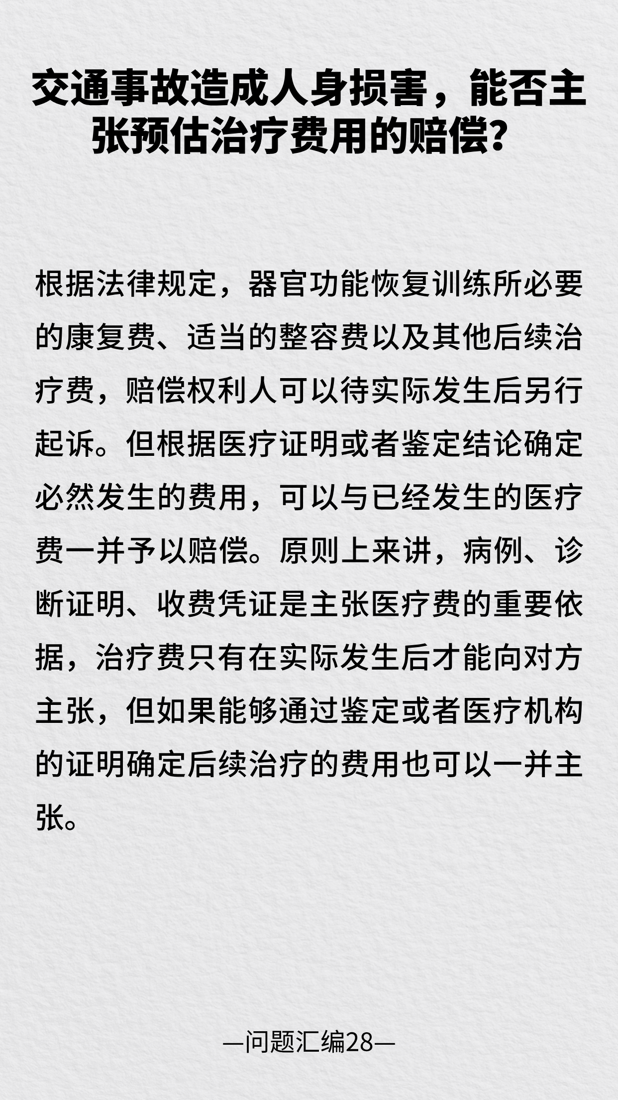 问题汇编28|交通事故造成人身损害,能否主张预估治疗费用的赔