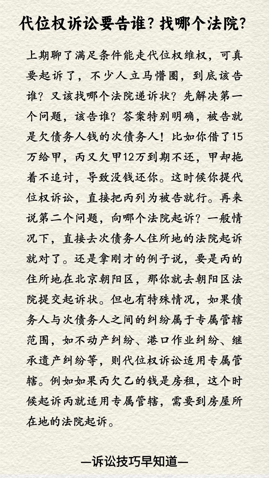 诉讼技巧早知道131|代位权诉讼要告谁?找哪个法院?