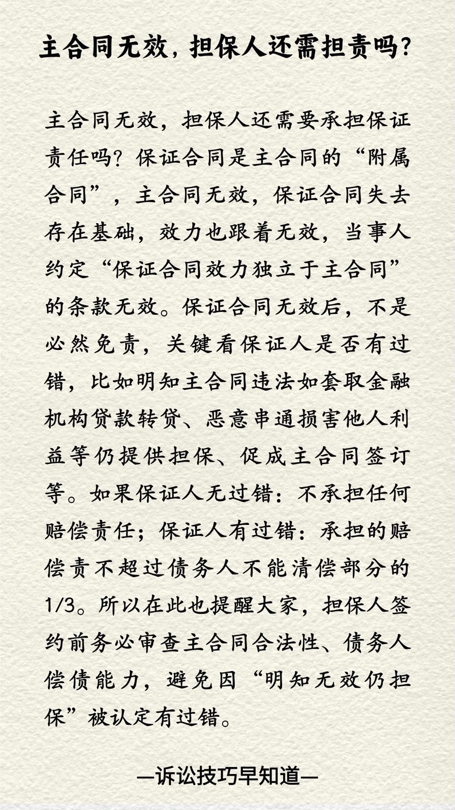 诉讼技巧早知道159|主合同无效,担保人还需担责吗?