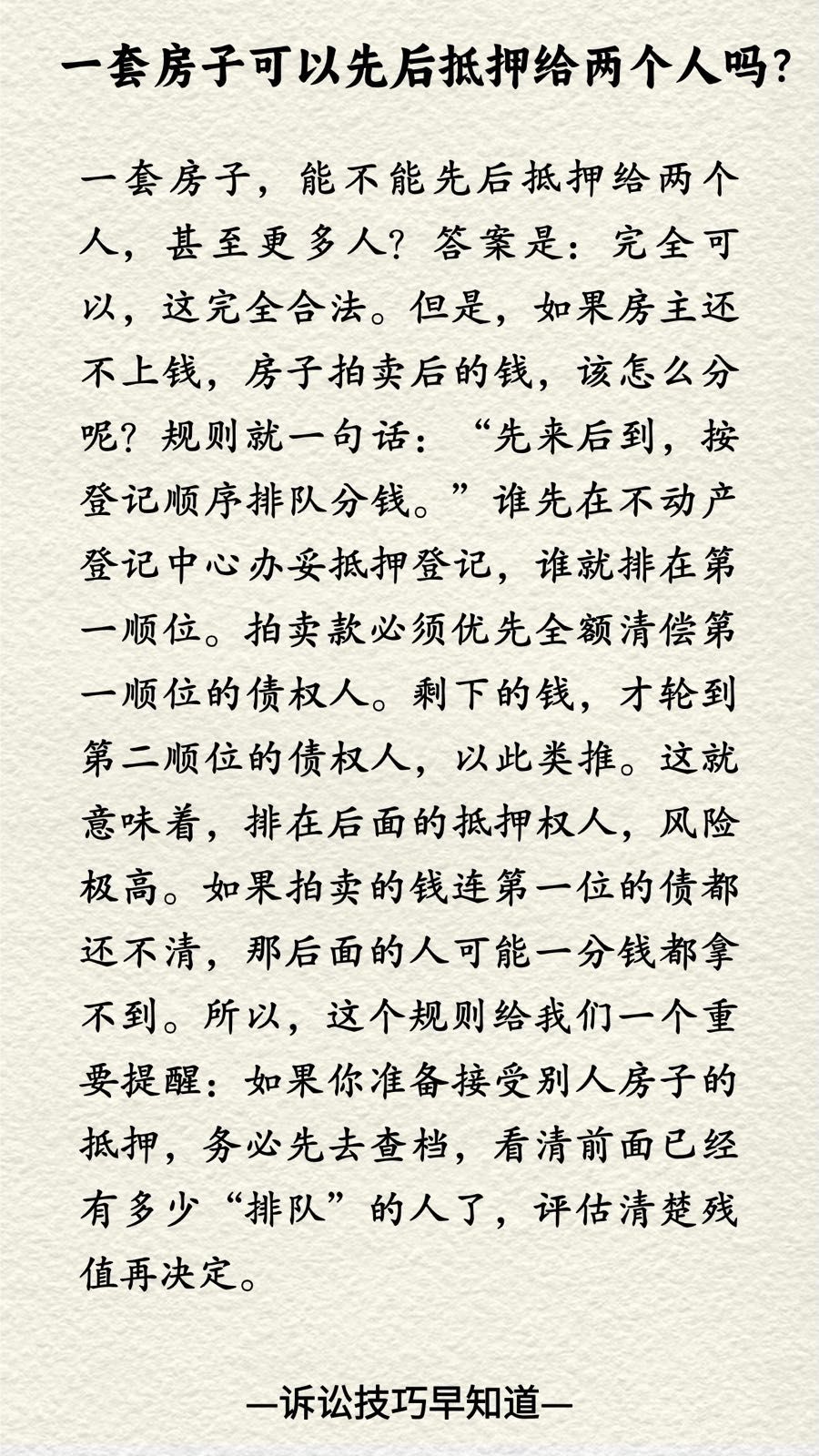诉讼技巧早知道167|一套房子可以先后抵押给两个人吗?