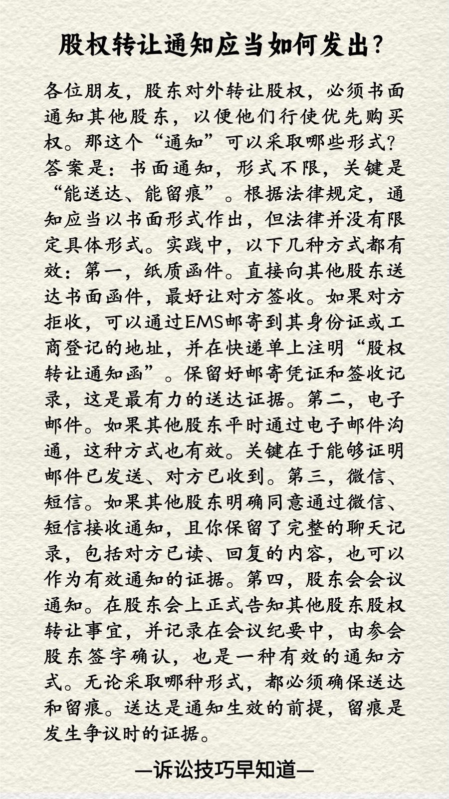 诉讼技巧早知道202|股权转让通知应当如何发出?