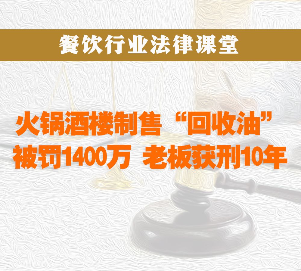 近日,四川某火锅酒楼制售“回收油”,被罚超1400万、老板获刑10年。