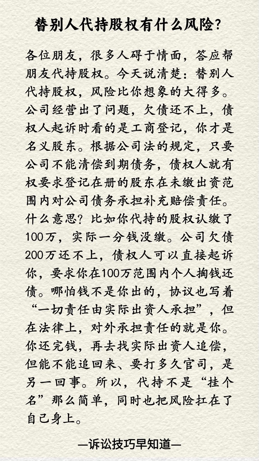 诉讼技巧早知道197|替别人代持股权有什么风险?