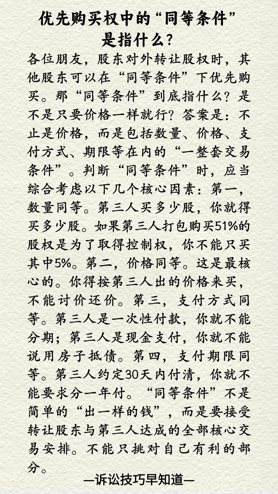 诉讼技巧早知道200|优先购买权中的“同等条件”是指什么?